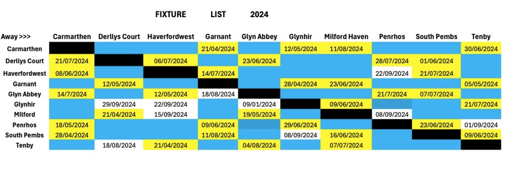 Away teams across the top on the X axis. Home teams down the side on Y axis.